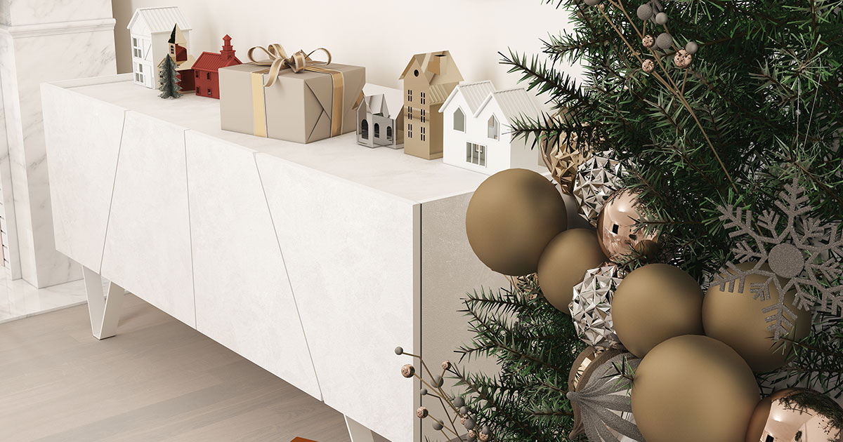 Quello che colpisce il visitatore è senz’altro l’ingresso: il primo ambiente delle mura domestiche. Decorare la propria abitazione per il periodo natalizio significa, quindi, partire da qui, per abbellire al meglio anche questo ambiente. Oltre a fare affidamento sulle classiche decorazioni natalizie, è ottimale dare rilievo alla consolle: come nel caso di Giuditta by Mobili Fiver, dalla profondità ridotta e dalle linee essenziali e moderne. Accanto allo svuota tasche sulla consolle, ad esempio, vi è lo spazio perfetto per un piccolo presepe, un alberello di legno e delle candele profumate alla cannella. Di impatto anche le composizioni naturali: rametti di pino, foglie di agrifoglio e pigne unite a tessuti grezzi, come tela e lino. Questi decori daranno un tocco rustico e curato alla casa, oltre che infondere la loro fragranza e dare un forte carattere alla nostra consolle.
