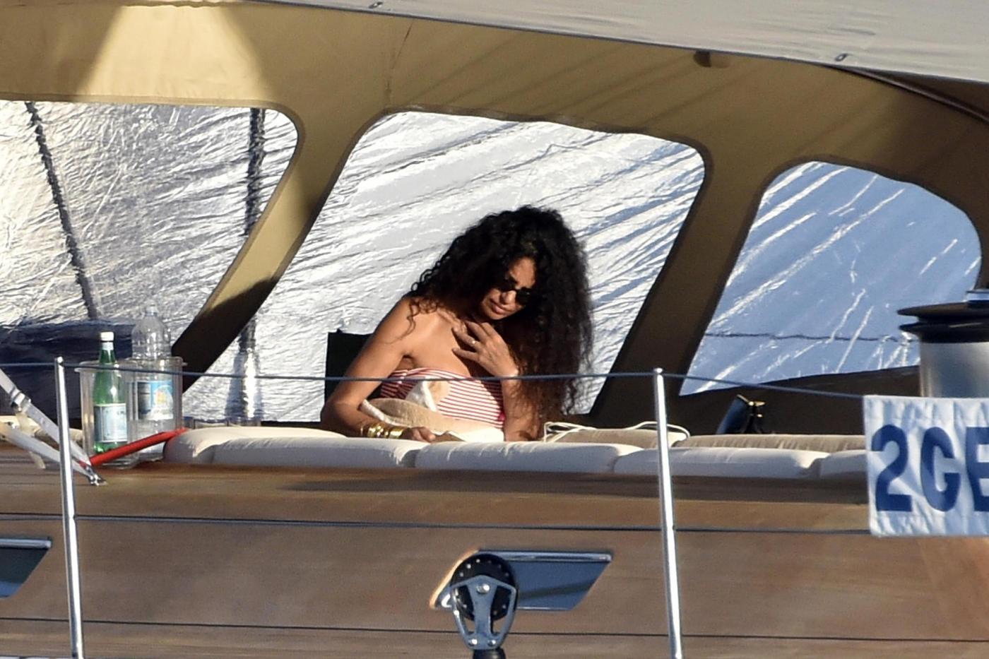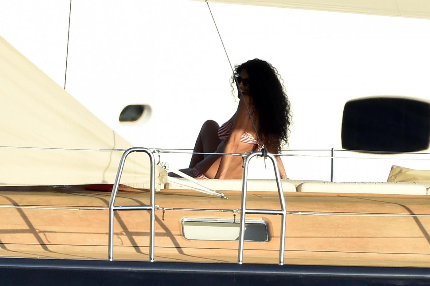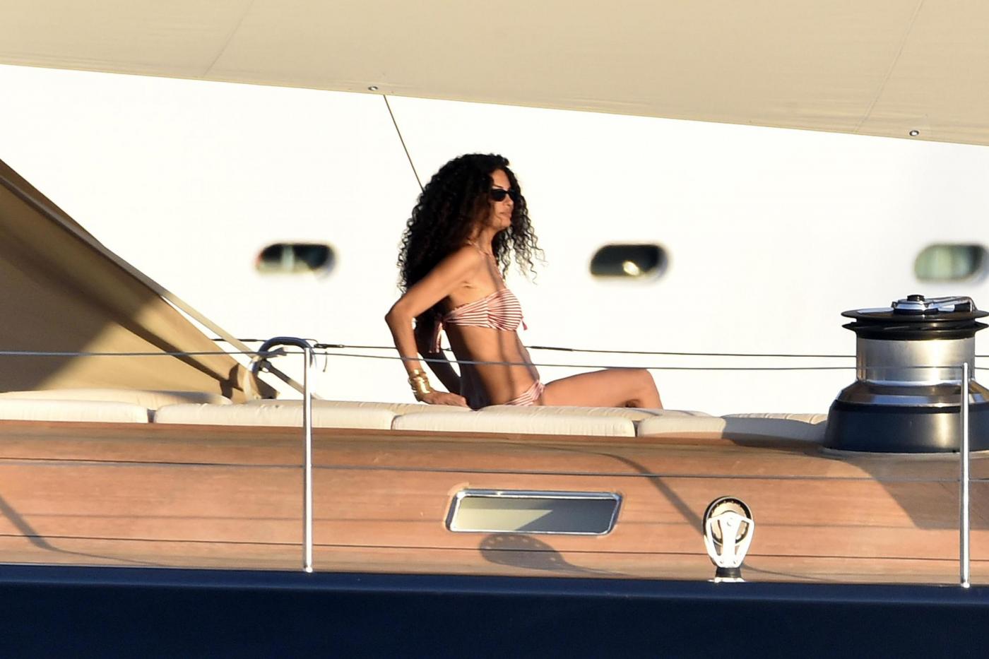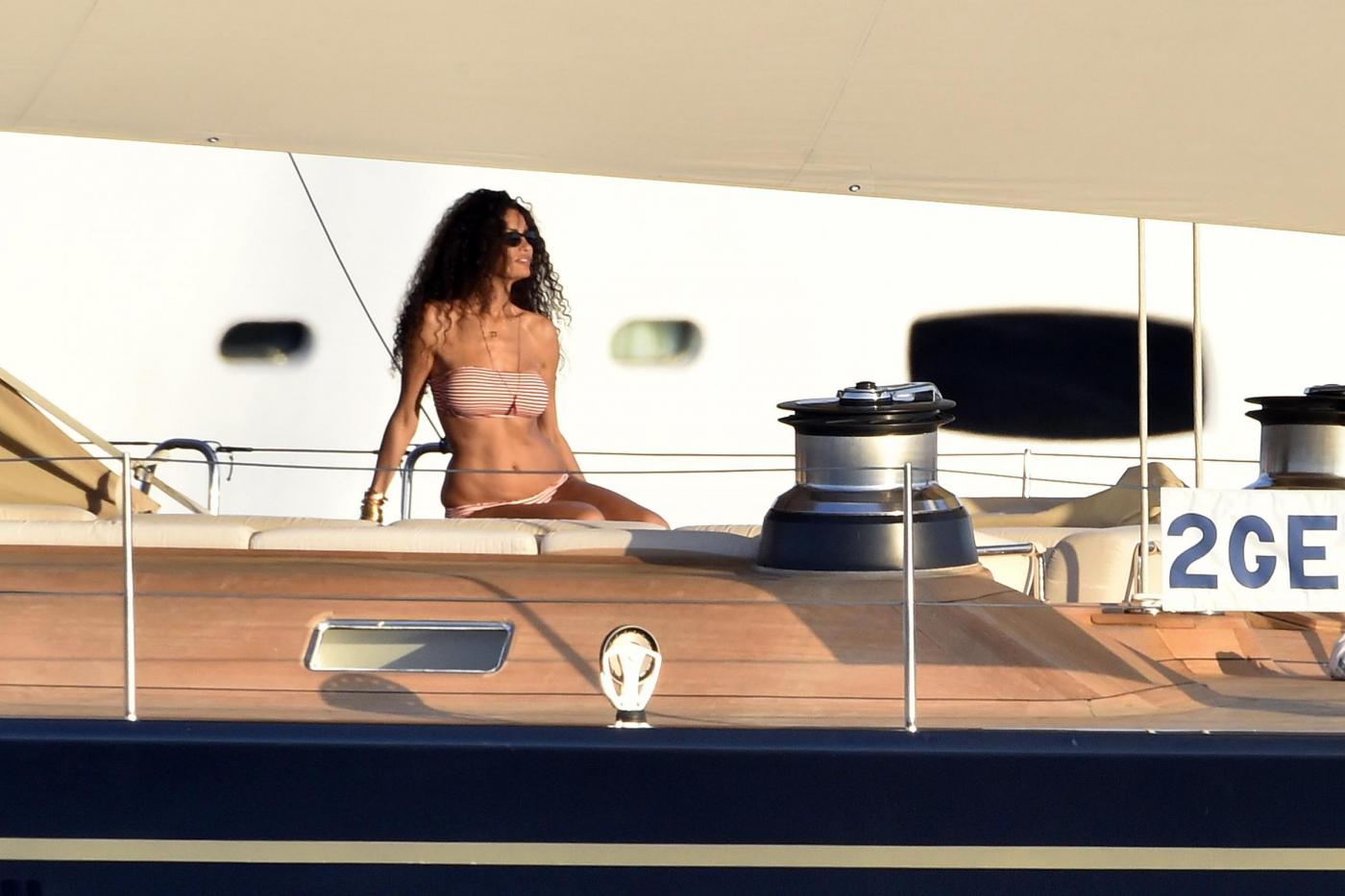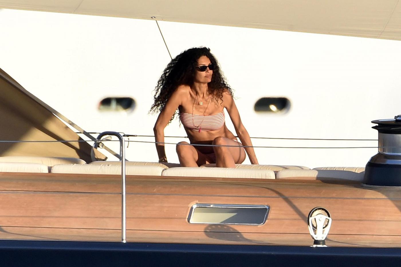 OLBIA – Afef Jnifen si gode il mare della Costa Smeralda sul superyacht di famiglia. L’ex modella e conduttrice tv chiacchiera rilassata con gli amici e prende il sole a favore di flash sfoggiando un elegante bikini a fascia che mette in risalto il suo decolletè prosperoso.