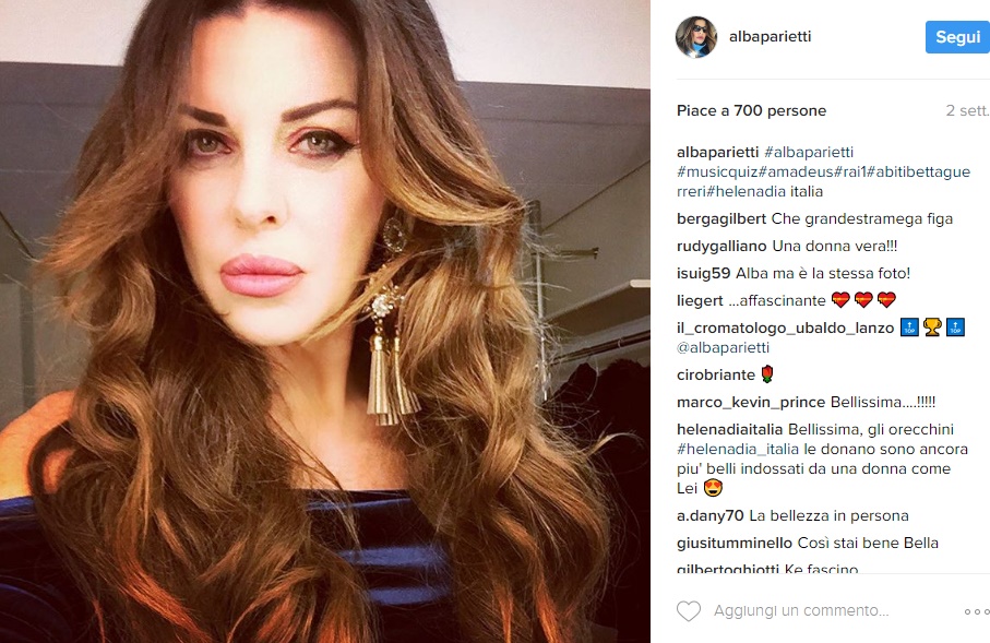 ROMA – Alba Parietti: età, marito, Instagram, figlio, il cancro… FOTO. Attrice, showgirl, conduttrice e soprattutto donna sensuale: Alba Parietti, protagonista del programma Music Quiz condotto da Amadeus in onda su Rai 1 in prima serata, è senza dubbio uno dei personaggi televisivi italiani più famosi e discussi degli ultimi 30 anni. Classe ’61, Alba Parietti ha 55 anni ed è ancora un simbolo di sensualità per migliaia di uomini, basti pensare che il suo profilo Instagram vanta moltissimi fan. Alba ha debuttato nel mondo dello spettacolo a teatro con “L’importanza di chiamarsi Ernesto” di Oscar Wilde nel 1977. Ha partecipato nel 1978 a Miss Italia, non arrivando tuttavia alle finali. Poi è iniziata la sua carriera sul piccolo schermo. La grande popolarità è arrivata solo alla soglia dei 30 anni, nel 1990, quando ha condotto la trasmissione a tema calcistico Galagol su Telemontecarlo. Di lì in poi è stato un percorso in crescita. Alba Parietti ha condotto anche il Festival di Sanremo 1992 accanto a Pippo Baudo, Milly Carlucci e Brigitte Nielsen. Tante le sue apparizioni in altri programmi, difficilmente riassumibili in poche righe.