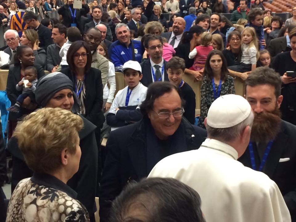 ROMA – Albano Carrisi, dopo il malore l’incontro speciale: FOTO. Albano Carrisi è forte come un leone: se ciò non fosse ancora chiaro a tutti, lo ha dimostrato anche oggi. A pochissimi giorni dal delicato intervento a cui è stato sottoposto dopo 2 infarti che lo hanno colpito il 9 dicembre scorso, Albano era già a Roma, in splendida forma, per un incontro davvero speciale. Il cantante di Cellino San Marco ha infatti partecipato all’udienza con Papa Francesco, che ha incontrato in Aula Paolo VI circa 20mila persone della comunità dell’ospedale pediatrico Bambino Gesù.