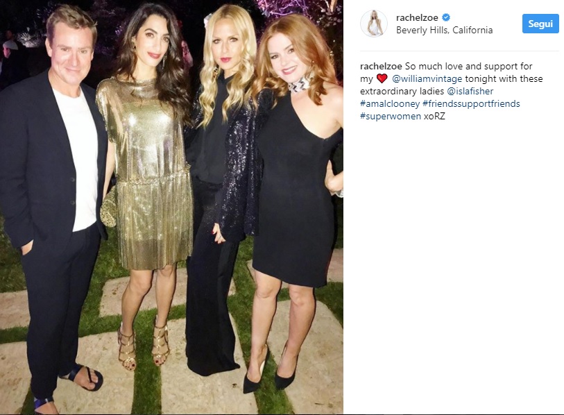 LOS ANGELES – Amal Alamuddin più chic che mai a un evento fashion dedicato allo stilista Gianni Versace. Location: Los Angeles. La signora Clooney ha indossato un mino abito dorato, che lasciava intravedere le esili gambe dell’avvocatessa. Sandali con tacco e pochette abbinate per completare il tutto. Amal neo mamma è apparsa più bella e in forma che mai. Il suo fascino l’ha resa protagonista assoluta della serata, al fianco di Rachel Zoe e Isla Ficher.