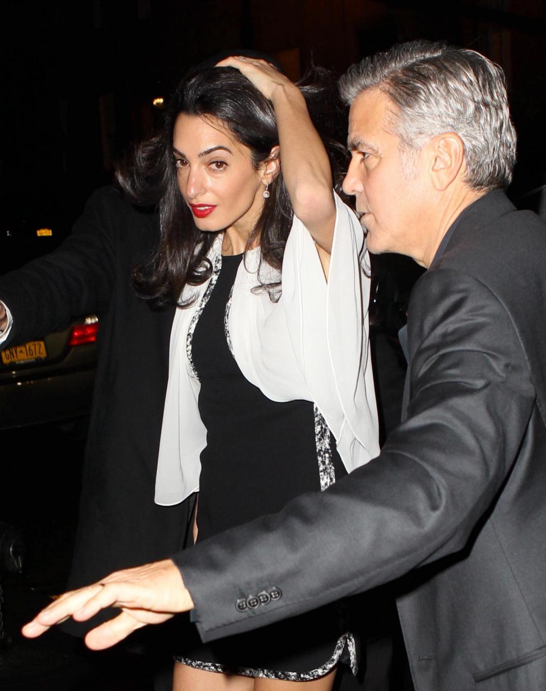NEW YORK – Amal Alamuddin e le gambe magrissime della signora Clooney. Il divo di Hollywood e sua moglie sono stati paparazzati all’uscita di un ristorante di Manhattan, nella Grande Mela. Per l’occasione l’affascinante avvocatessa di origine libanese ha indossato un mini abito nero sotto il quale si intravedevano le sue gambe magrissime, esili al punto da fare impressione. Sopra il vestito una casacca bianca bordata di un tessuto brillante e ai piedi decollétée nere. Già dalle foto delle nozze a Venezia era palese la linea impeccabile di Amal, ma ora sembrerebbe addirittura dimagrita rispetto a prima.