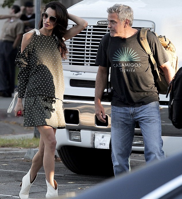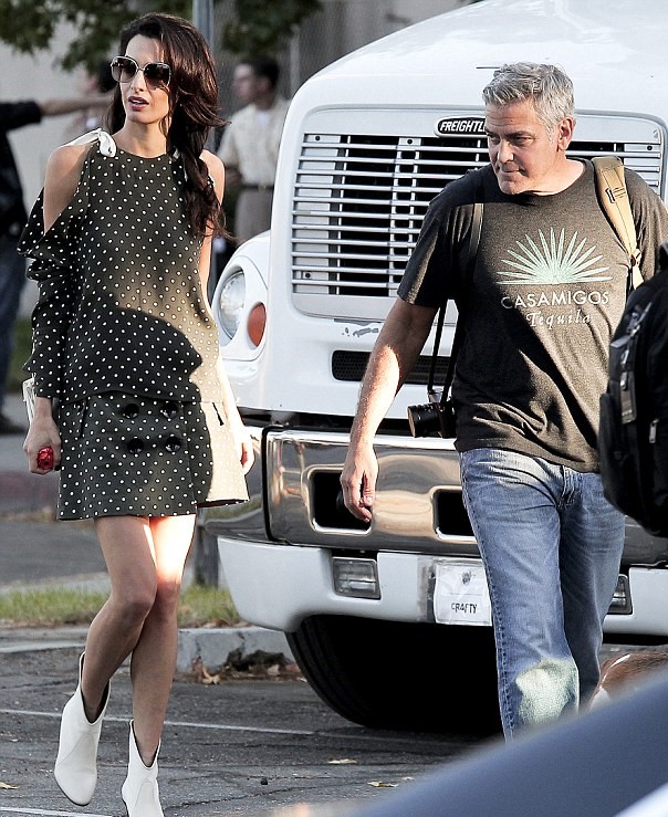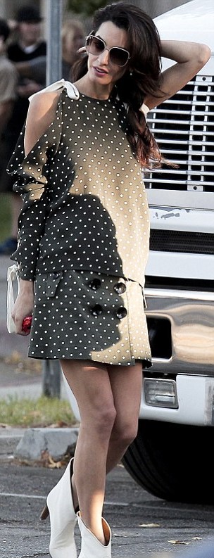 LOS ANGELES – Amal Alamuddin glamour: fotografata in strada a Los Angeles con un tubino corto e tronchetti bianchi ai piedi. Amal e suo marito George Clooney hanno celebrato il loro secondo anniversario di matrimonio la settimana scorsa, e George Clooney ha scherzato su come i critici avessero detto il suo matrimonio non sarebbe durato. Ed effettivamente nelle foto scattate poche ore fa, nel pomeriggio di martedì 4 otobre, la coppia ride e scherza.