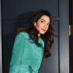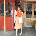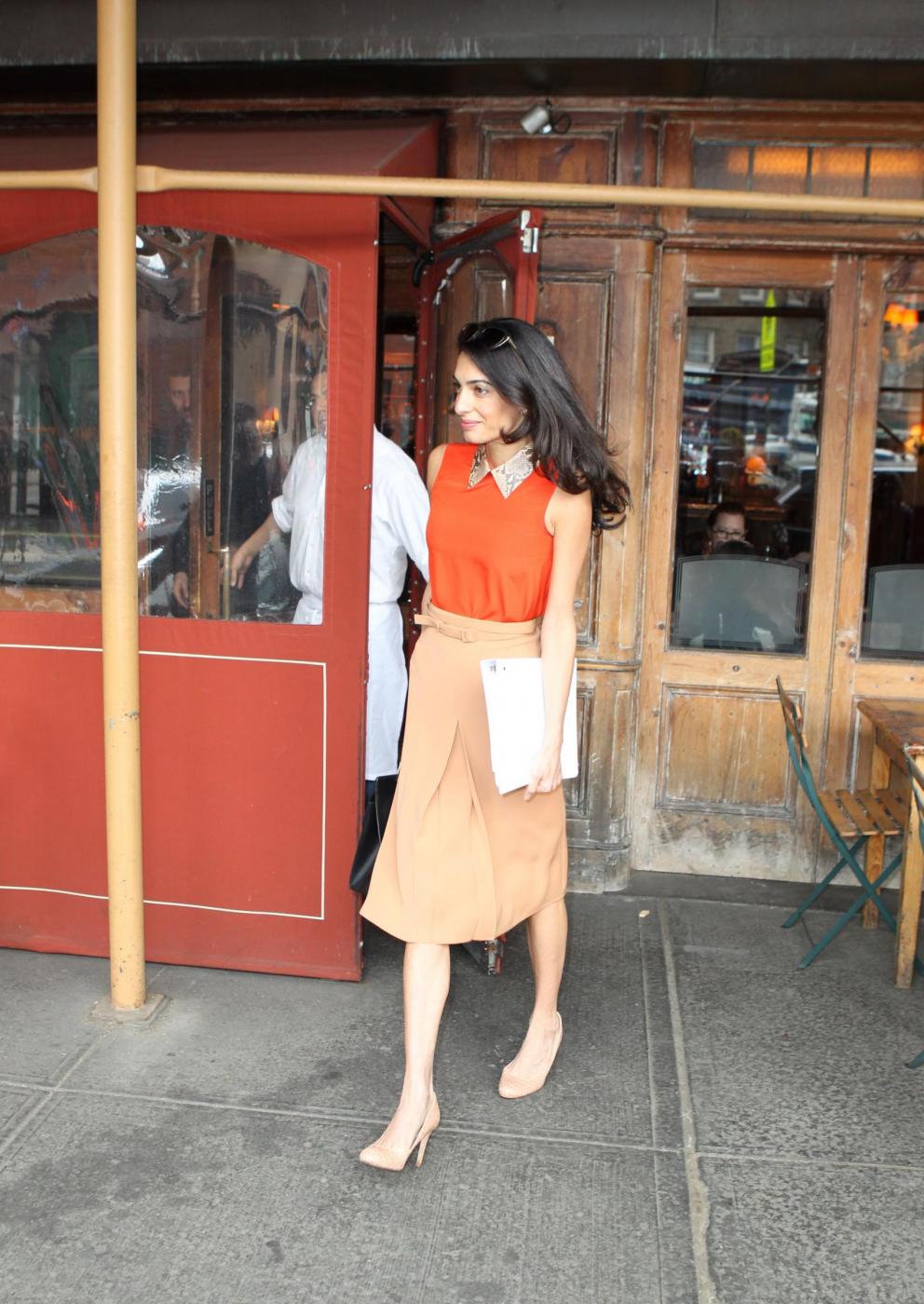 Amal Clooney was photographed leaving the monkey bar with some friends wearing an interesting fur top and black and yellow pants on Tuesday night March 24, 2015 T/X17online.comX17online/LaPresseOnly Italy