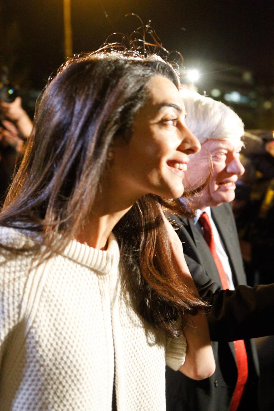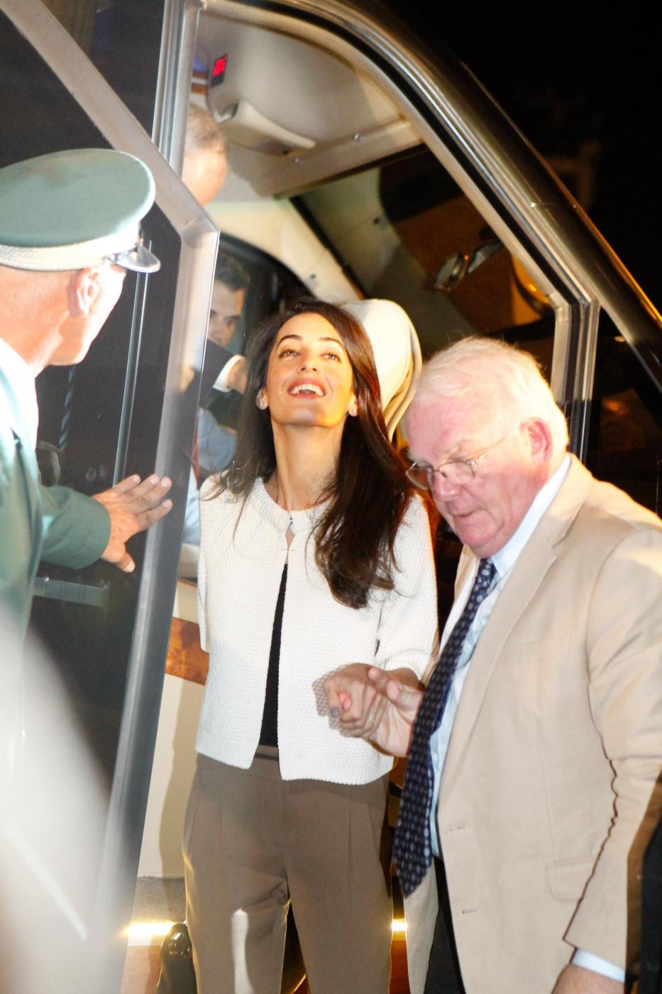 Oct. 13, 2014 - Athens, GREECE - AMAL ALAMUDDIN and the Chairman of the International Association for the Reunification of the Parthenon Sculptures David Hill arrived in Athens today to advise the Greek government on how to repatriate the ancient Elgin Marbles statues from Britain. Alamuddin - who married George Clooney in Venice last month - will meet Greek Prime Minister Antonis Samaras and Culture Minister Konstantinos Tasoulas, as well as her boss, Geoffrey Robertson.Zuma press/LaPresseOnly Italy