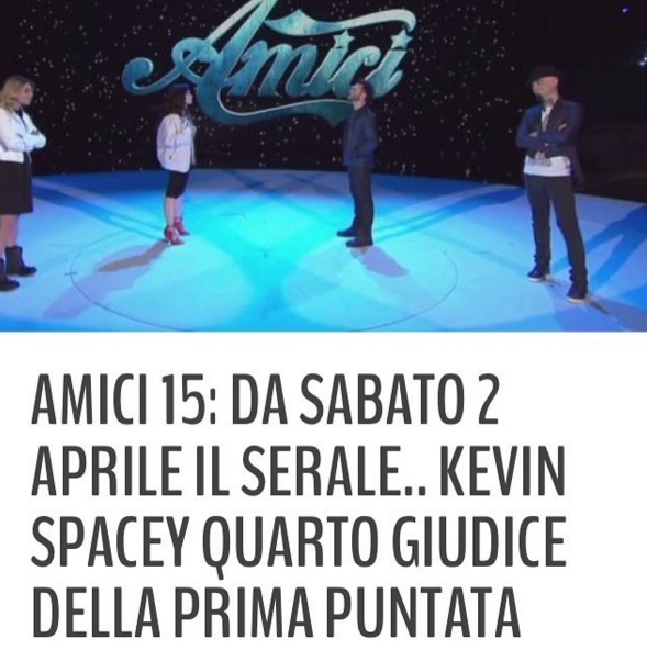 ROMA – Amici 2016: Kevin Spacey primo super ospite! FOTO. Amici 2016, la quindicesima edizione del talent show più famoso d’Italia, è ai nastri di partenza. E, come sempre, Maria De Filippi non lascia nulla al caso ed è pronta ad un inizio con i fiocchi. Oltre al super cast di eccezione composto da personaggi molto amati quali Nek, J-Ax, la giuria tutta al femminile formata da Loredana Bertè, Anna Oxa e Sabrina Ferilli oltre che al grande Morgan, ecco il super ospite della prima puntata: Kevin Spacey, attore di “House of Cardes” scelto direttamente da Maria De Filippi in persona. E si sa che la grande conduttrice non sbaglia un colpo. Maria De Filippi, però, ci tiene a stroncare immediatamente i rumors in merito ai compensi super-milionari: