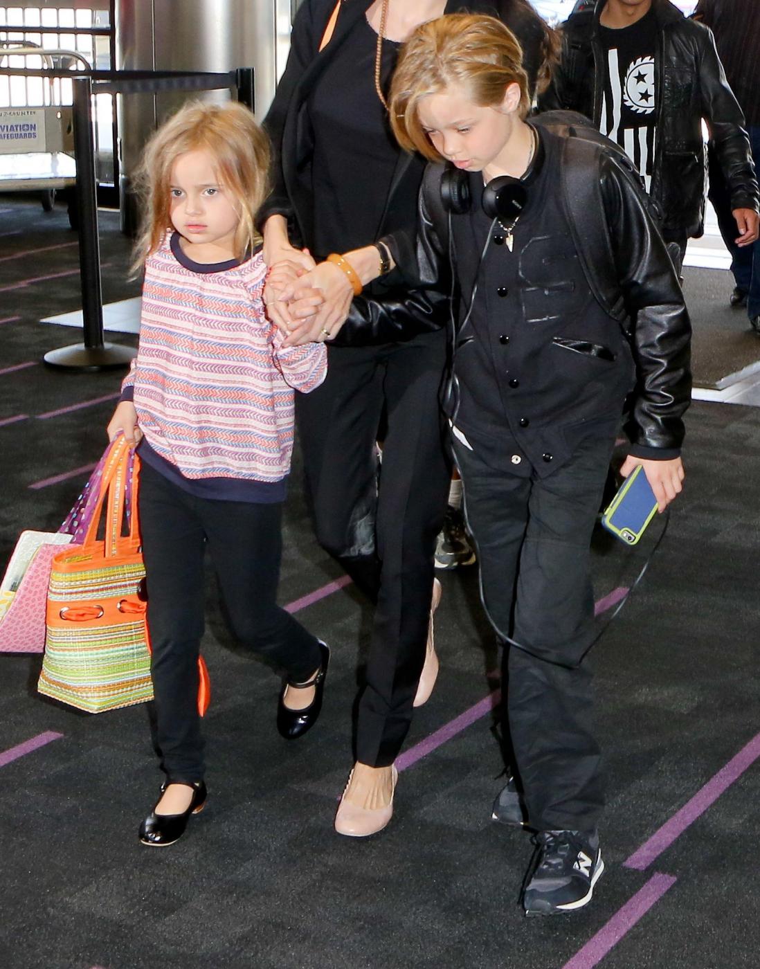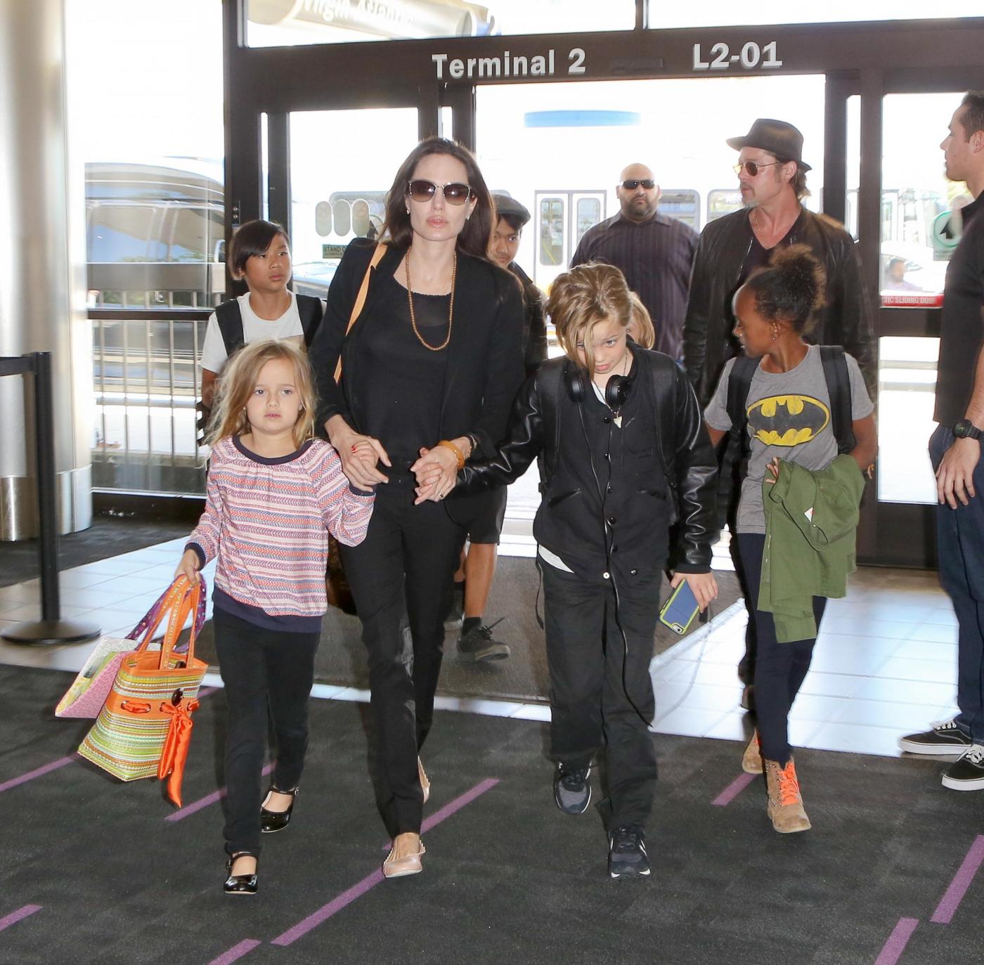Airport scene! Brad Pitt and Angelina Jolie flying with Pax, Maddox, Vivienne, Zahar, knox, Shiloh to Europe June 6, 2015 jul-kmm/X17online.com X17online/LaPresseOnly Italy
