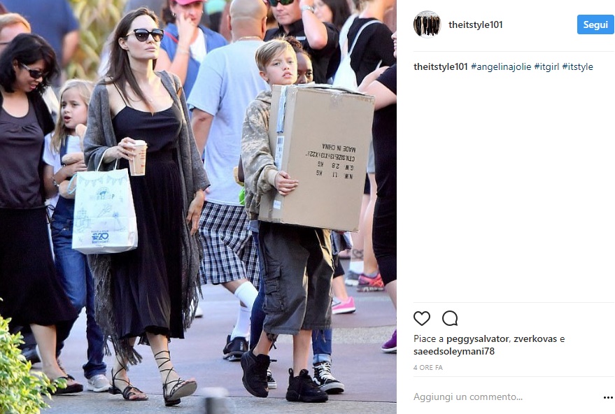 A quanto pare Angelina Jolie deve essersi affidata a una dieta ingrassante e infatti nelle ultime foto è apparsa raggiante come non mai. Abitino nero stretto in vita, sandali bassi con lacci alla schiava, Angelina è super fashion insieme ai figli. Particolare che non è passato inosservato, l’attrice è senza reggiseno.