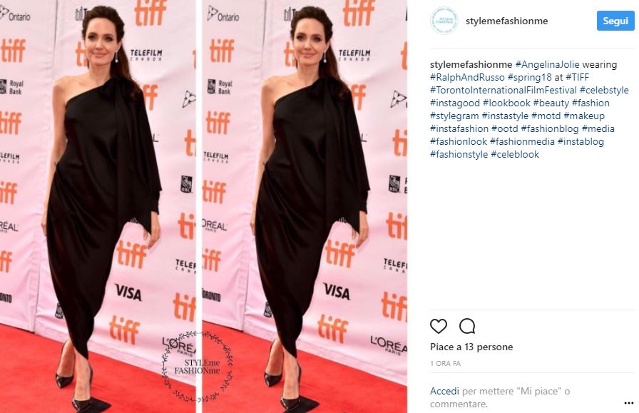 Angelina Jolie regina di semplicità, abito monospalla a Toronto