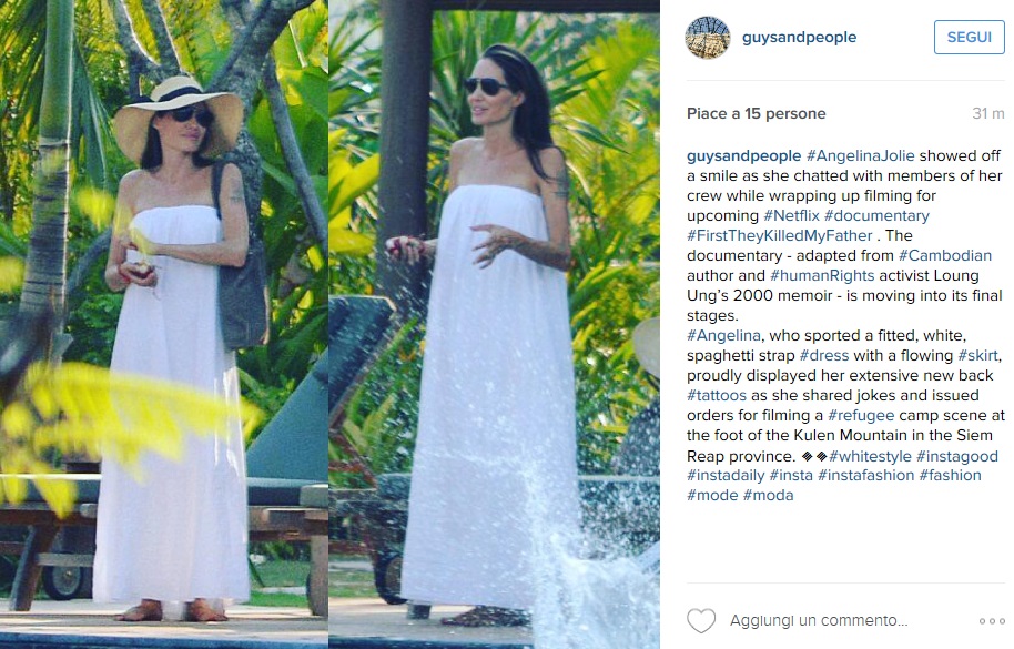 PHNOM PENH (CAMBOGIA) – Angelina Jolie sempre più magra? Si nasconde sotto a… FOTO. È tornata in Cambogia Angelina Jolie, dove sta finendo le riprese del suo quarto film da regista, «First They Killed My Father: A Daughter of Cambodia Remembers». Paparazzata dai fotografi del Daily Mail, però, Angelina Jolie appare con un abito bianco che fa presagire -ancora una volta- il peggio. L’attrice infatti ha scelto un abito bianco molto ampio, strana scelta per Angelina che ama notoriamente gli abiti attillati. Sembra quasi che l’attrice tenti di nascondere il suo fisico forse troppo esile. Il bianco, si sa, è noto per le proprietà “ingrassanti” e il fatto che sia molto ampio ha dato adito a non poche chiacchiere in merito ad una sua nuova ed eccessiva magrezza che l’attrice tenta di nascondere in qualche modo.