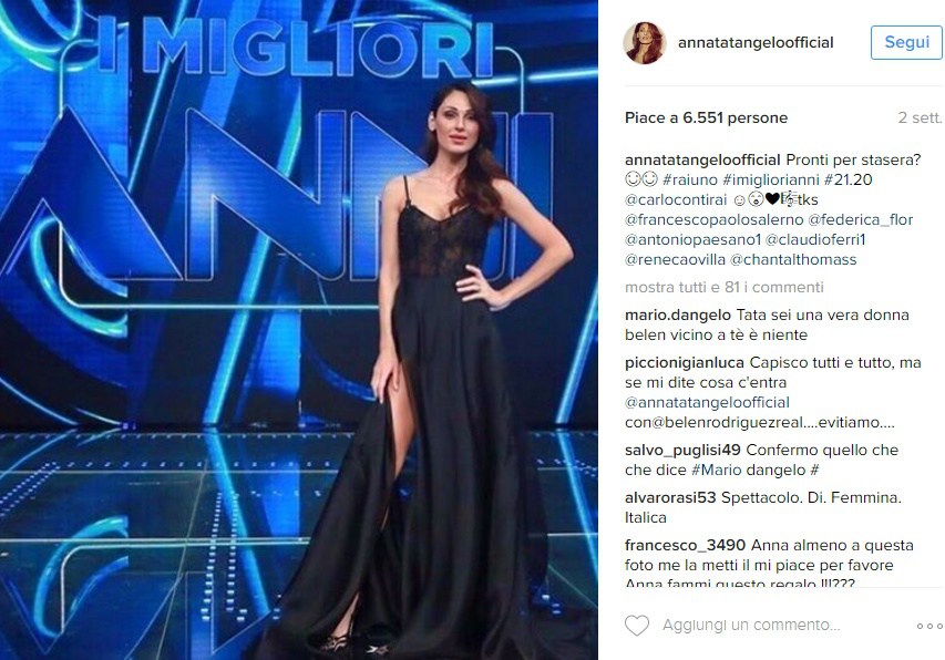 Nel maggio scorso, Anna Tatangelo è stata duramente criticata per gli abiti considerati troppo audaci durante la sua co-conduzione de “I migliori Anni” a fianco di Carlo Conti: “Punta tutto sul fisico rifatto e non sulla voce, pessima e volgare”. La bella e brava compagna di Gigi D’Alessio ha fatto parlare di sé più per i suoi look che per le doti da conduttrice e cantante: mise molto sexy, scollature vertiginose, spacchi estremi, nude look, minigonne inguinali, seno e gambe perennemente in vista… la Tatangelo ha dato davvero il meglio.