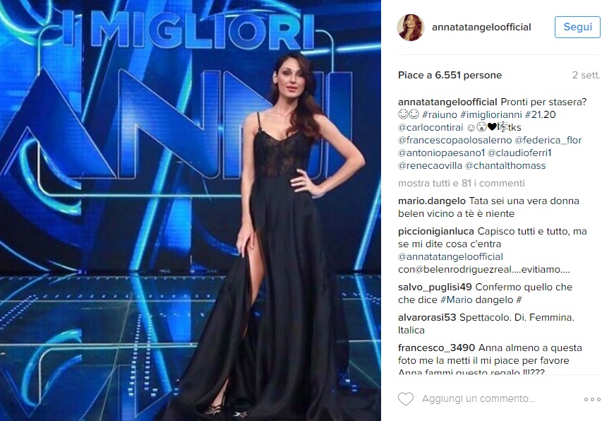 La bella e brava compagna di Gigi D’Alessio è diventata la regina incontrastata del venerdì sera al fianco di Carlo Conti. Anna Tatangelo, però, sta facendo parlare di sé più per i suoi look che per le sue doti da conduttrice e cantante: mise molto sexy ed audaci, scollature vertiginose, spacchi estremi, nude look, mingonne inguinali, seno e gambe perennemente in vista… la Tatangelo sta dando davvero il meglio.