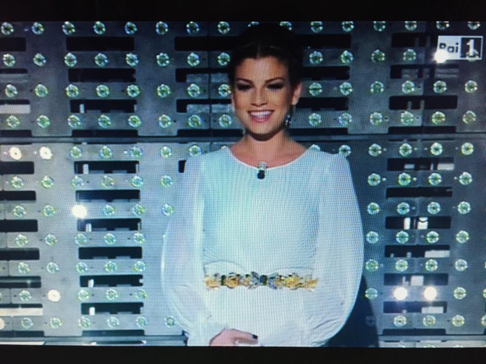 SANREMO – Sanremo 2015, Emma Marrone versione hippie per la quarta serata del Festival della canzone italiana. Abito bianco con cintura alla schiava. Per la sua terza serata invece, la valletta ha indossato un vestito corto color oro con colletto. Sui social network è partito il paragone con le gemelline del film diretto da Stanley Kubrick, basato sul romanzo omonimo di Stephen King. Pizzo rosso invece per la seconda serata. Abito bianco stile principesco per la prima.