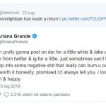 LOS ANGELES – Ariana Grande contro Instagram: annuncia pausa dai Social. Ariana Grande non tollera più l’odio e i commenti cattivi scaturiti spesso dagli utenti Social e, per questo motivo, avrebbe preso alcune scelte importanti in merito al suo futuro su Internet. Dopo che il fidanzato Pete Davidson ha deciso di cancellare tutto da Instagram, anche Ariana prende posizione: nonostante continuerà a postare su Snapchat, sembra abbia deciso, seppur in modo non drastico, di prendersi un po’ di tempo lontana da Instagram e Twitter. La cantante ha spiegato attraverso un post: