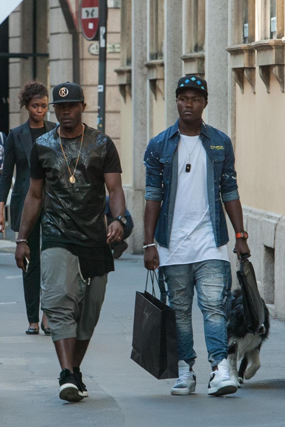 MILANO – Tshirt nera, pantaloni larghi lunghi fin sotto il ginocchio, cappellino e catena l’oro al collo. Asamoah, centrocampista della Juventus di origine ghanese, ha scelto questo look da rapper per ammirare le vetrine di via Montenapoleone, centro dello shopping e dei negozi di lusso di Milano.