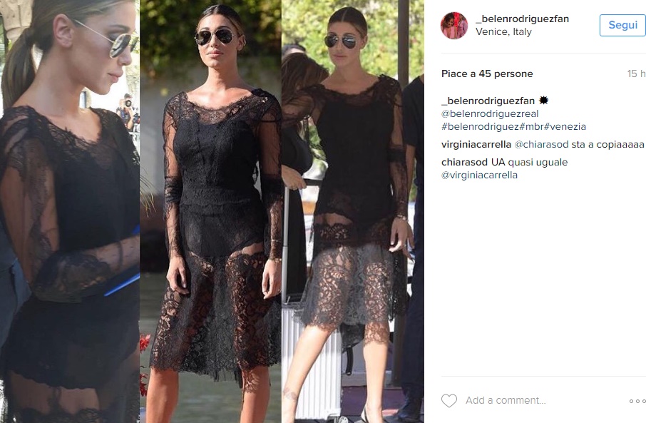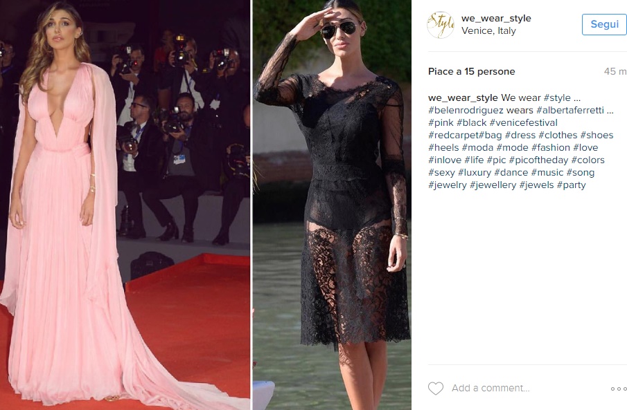 Così, poco dopo la sua catwalk il popolo della rete si è diviso tra chi giudicava l’abito adatto alla situazione e chi no. Per i primi era troppo esagerato e inadatto alla situazione, per i secondi un elogio alla femminilità di Belen. Forse l’obiettivo era proprio quello di optare per un abito che facesse discutere, come spesso accade per le star hollywoodiane. La showgirl ha indossato anche un’altra creazione firmata Ferretti per l’arrivo al lido. In quel caso si trattava di un tubino nero che lasciava intravedere la lingerie. E anche per questo secondo abito le critiche non si sono fatte attendere: questa volta, a non piacere al pubblico sono stati gli occhiali. Dei RayBan assolutamente troppo sportivi per il look.