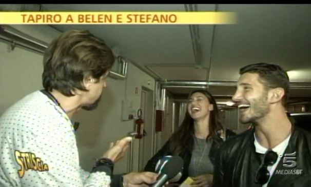 MILANO – Belen Rodriguez e Stefano De Martino: ennesimo tapiro. Il motivo? “Hanno rischiato di non essere più la coppia più bella del mondo”. L’inviato del tg satirico, Valerio Staffelli, propone ripetutamente ai due coniugi di inserirlo nel loro ménage per aiutarli a non litigare più e chiede chi dei due abbia fatto il primo passo per riconciliarsi. Stefano risponde: «Insieme».