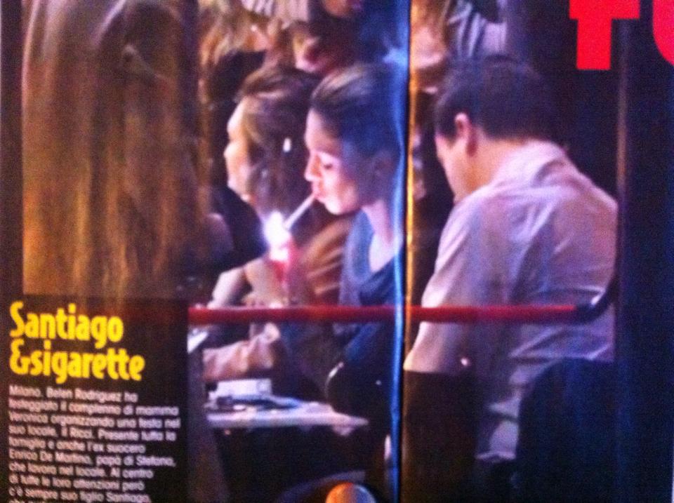 “Belen Rodriguez ha festeggiato il compleanno di mamma Veronica nel suo locale, il Ricci. Presente tutta la famiglia ma al centro delle loro attenzioni c’è sempre suo figlio Santiago, che purtroppo ha dovuto respirare il fumo passivo di tutte le sigarette degli ospiti”.