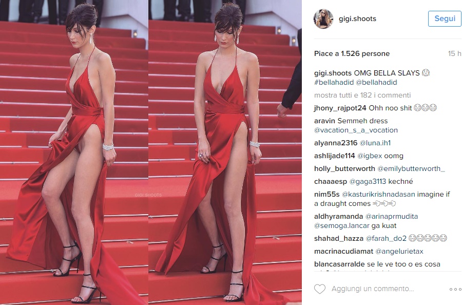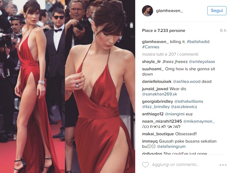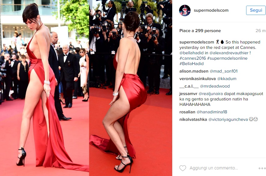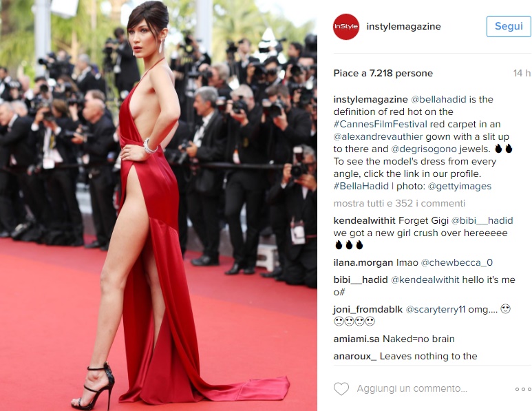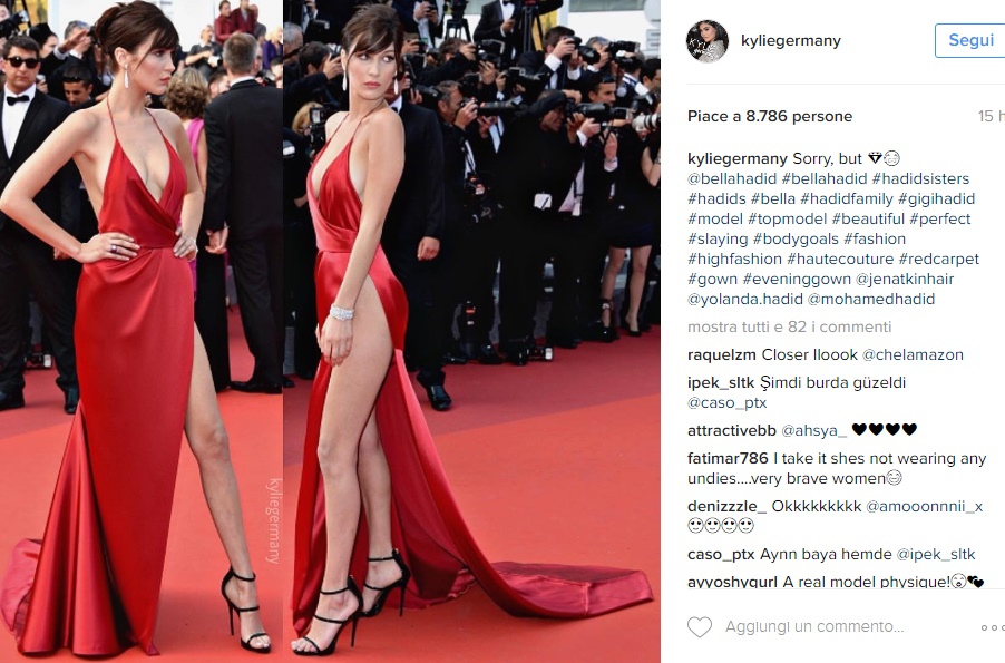 CANNES – Bella Hadid: l’abito Alexandre Vauthier è da impazzire FOTO. Ci sono alcune celebrity bellissime, sui red carpet. Poi, ce ne sono altre da mozzare il fiato. È quello che è accaduto al pubblico e ai fotografi di Cannes alla vista di Bella Hadid, modella nonché sorella di Gigi Hadid, che sul tappeto rosso della mostra del cinema ha letteralmente fatto impazzire tutti, con uno spacco stratosferico per l’abito rosso fuoco firmato Alexandre Vauthier. Che dire, non ce n’è per nessuna, il vestito lungo ha fatto splendere Bella, di nome e di fatto, vero e proprio astro nascente della moda proprio come la sorella Gigi.