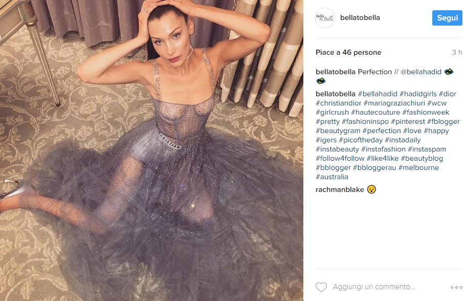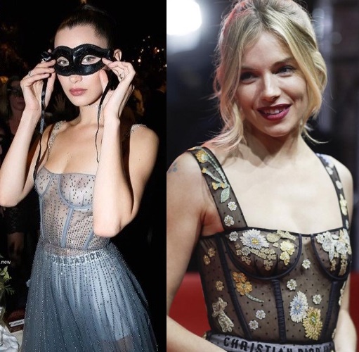 Anche la modella Bella Hadid recentemente, in occasione del Dior Ball, ha sfoggiato un abito della Maison francese che ha letteralmente catalizzato l’attenzione dei fotografi. Un vestito “estremo” formato da pizzi e trasparenze che ha mostrato il seno di Bella Hadid che, tuttavia, è apparsa bellissima e completamente a suo agio. Sia Sienna Miller che Bella Hadid hanno saputo portare l’abito a meraviglia. Dopotutto non è un caso se entrambe sono considerate due bellissime donne nonché icone di moda. La prima bionda, l’altra mora, tutte e due sono dotate di una bellezza acqua e sapone che ha conquistato milioni di fan in tutto il mondo. A soli 20 anni Bella Hadid è una delle modelle più ambite del momento, contesa dagli stilisti e dai marchi di moda più importanti e influenti al mondo. Sienna Miller, 35 anni, è un’attrice molto richiesta e ha numerose pellicole di successo alle spalle. Di seguito ecco alcune foto di Bella Hadid e Sienna Miller con due abiti di Dior firmati Maria Grazia Chiuri.