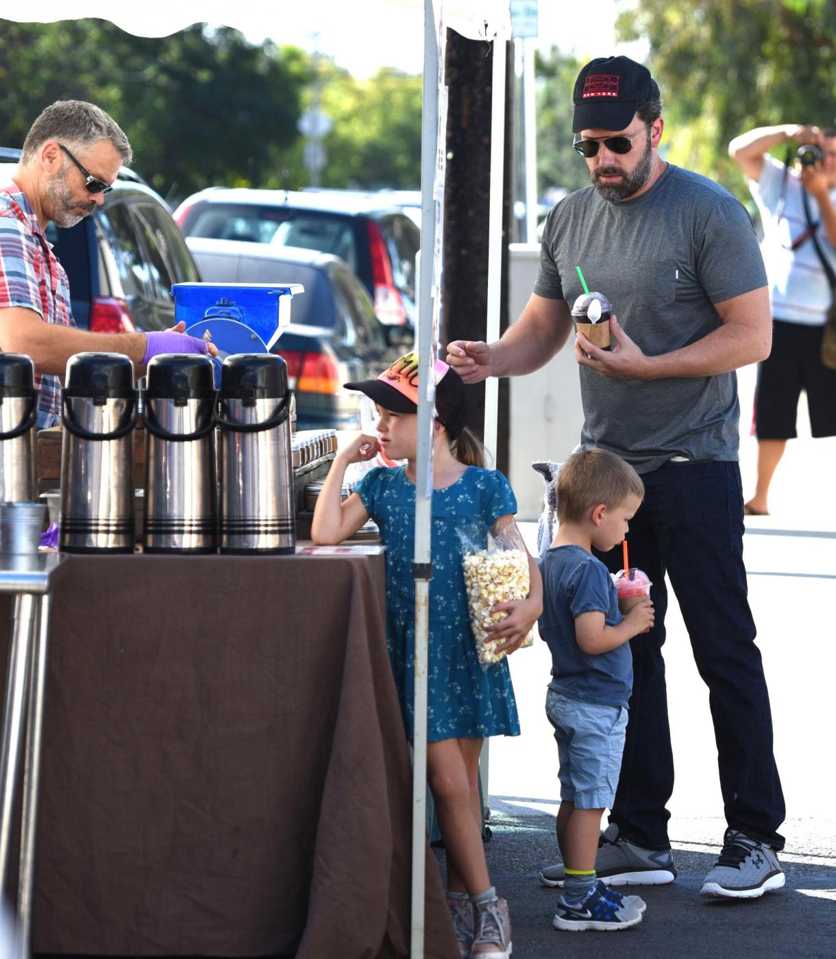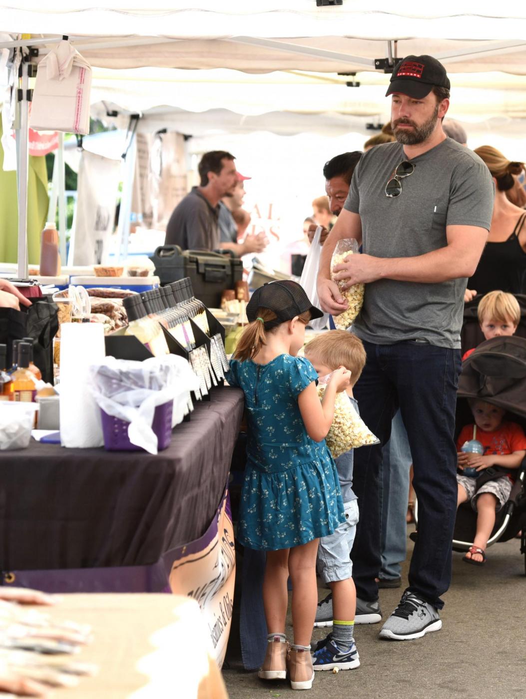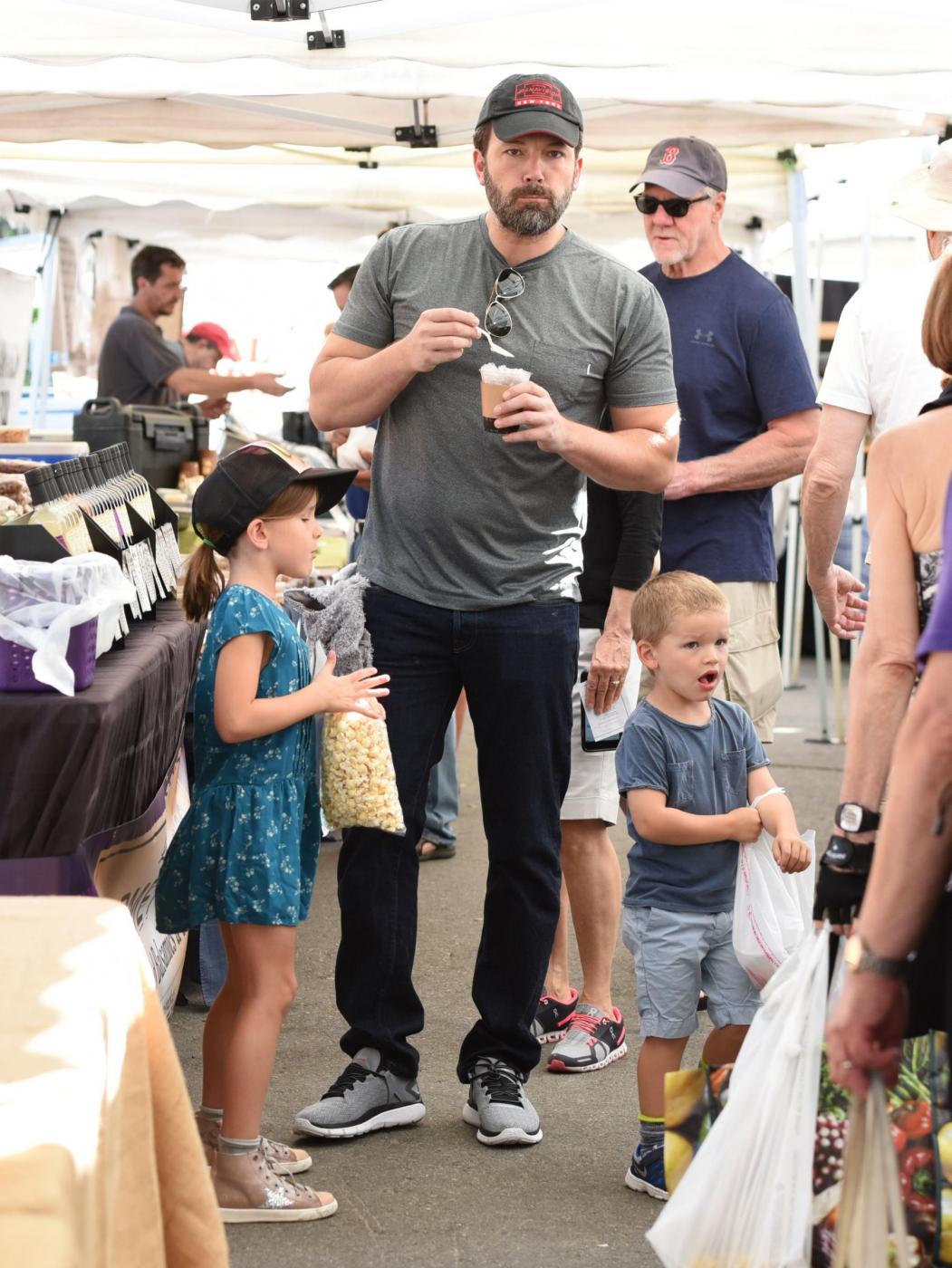 LOS ANGELES – Ben Affleck ha perso la sua dolce metà, Jennifer Garner, ma non per questo rinuncia a fare il buon padre. L’attore, con aria triste, si è aggirato fra i banchetti degli agricoltori del mercato di Brentwood, distretto di Los Angeles, assieme ai figli Samuel e Seraphina, che ha guidato per mano e ai quali ha comprato dei pop corn e una bevanda fresca. L’attore sembra negli ultimi tempi distrutto dalla separazione: la barba incolta, lo sguardo triste e qualche chilo di troppo sono tutti segnali che per il 43enne questo è davvero un momento cupo, che dovrà cercare di affrontare aggrappandosi all’amore per i figlioletti e all’affetto dei suoi fan.