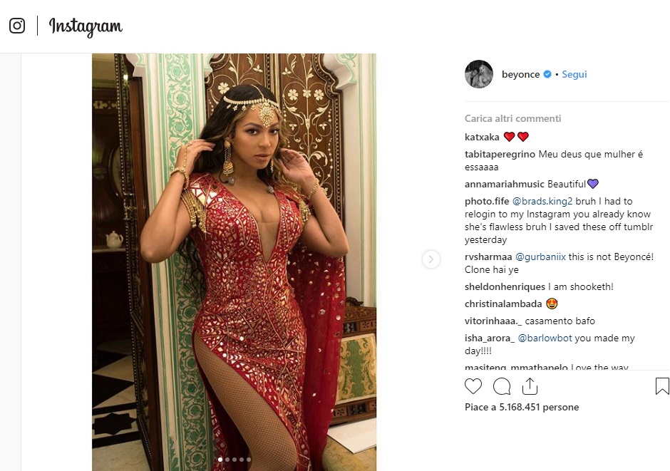 UDAIPUR – Beyoncè si è esibita alla festa che annuncia il matrimonio di Isha, la figlia di Mukesh Ambani, presidente della Reliance Industries nonché uomo più ricco dell’India. Alla festa prenunziale, la popstar americana si è presentata con degli abiti ispirati alla tradizione indiana e le foto sono state prontamente diffuse da lei stessa via Instagram.