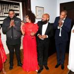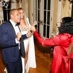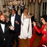 L’abito è personalizzato, abbinato a delle paillettes color oro che la circondano proprio all’altezza del pancino, ed è stato realizzato dallo stilista Peter Dundas.