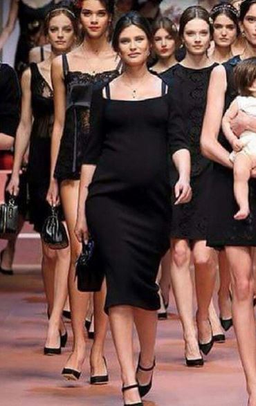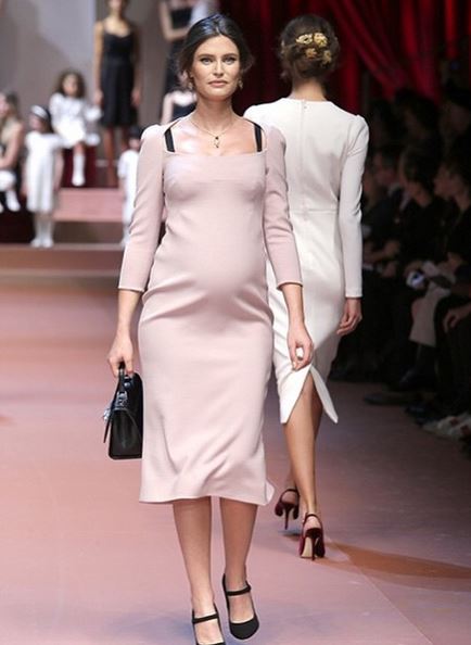 Pregnant Italian model Bianca Balti presents a creation from the Dolce & Gabbana Autumn/Winter 2015/16 collection during Milan Fashion Week March 1, 2015. REUTERS/Alessandro Garofalo (ITALY - Tags: FASHION)