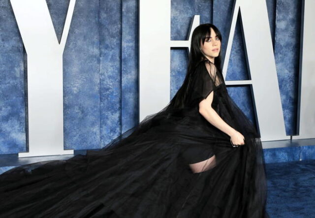 Billie Eilish arrives at the 2023 Vanity Fair Oscar Party following the 95th annual Academy Awards ceremony, at the Wallis Annenberg Center for the Performing Arts in Beverly Hills, California, USA, 12 March 2023. The Oscars are presented for outstanding individual or collective efforts in filmmaking in 24 categories. EPA/NINA PROMMER