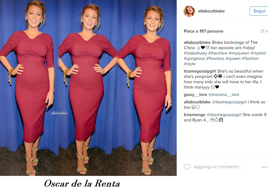 L’ultima uscita pubblica risale ad oggi, quando la bella Blake ha sfoggiato una bellissima creazione Versace e capelli mossi. Stessa pettinatura ma un vestito completamente diverso ieri, quando l’attrice ha postato una foto su Instagram con un abitino corto firmato “Monse” che ha fatto impazzire le fan. Ancora, rosso acceso per l’abito elegante firmato Oscar de la Renta, impreziosito da un meraviglioso drappeggio sulla scollatura. Trionfo di tulle a contrasto con il corpetto in pelle per il glamourissimo abito firmato Carolina Herrera e, per finire, piume e argento per l’abito corto griffato Michael Kors. Che dire, scegliere quale sia l’abito migliore è davvero difficile.