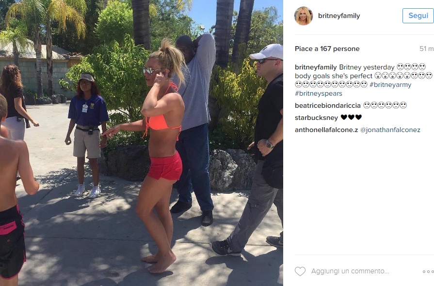 LOS ANGELES – Britney Spears è magrissima! In costume fisico super FOTO. Britney è tornata: più bella, felice e in forma che mai. È ormai da qualche mese che si stava intuendo il cambiamento ma le foto postate in questi giorni dall’ex bimba prodigio della Disney non lasciano spazio a dubbi: Britney Spears sfoggia un fisico super, da fare invidia alle colleghe molto più giovani. Complici uno stile di vita regolare, la giusta dose di attività fisica e alimentazione sana, la cantante in costume ha una silhouette a dir poco perfetta: curve ai punti giusti, nemmeno un filo di grasso e cellulite, sono lontani i tempi in cui girava per le strade di Los Angeles rasata, piena di imperfezioni su cosce e glutei e con l’aria disperata. Ora, Britney appare più felice che mai e il suo fisico al top non è altro che un effetto collaterale (positivo) della sua serenità ritrovata. Non solo la star è di nuovo in formissima ma ha anche ricominciato a lavorare regolarmente: gli impegni come artista fioccano così come i momenti felici passati insieme ai due figli. A dimostrazione di ciò, Britney posta quotidianamente foto sul proprio profilo Instagram in cui si mostra allegra e spensierata.
