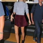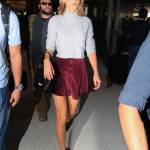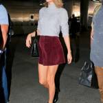 Taylor Swift a passeggio in minigonna Pop star Taylor Swift left Los Angeles in a burgandy skirt with a black top, wearing shades, her hair down X17online.comLaPresse -- Only italy