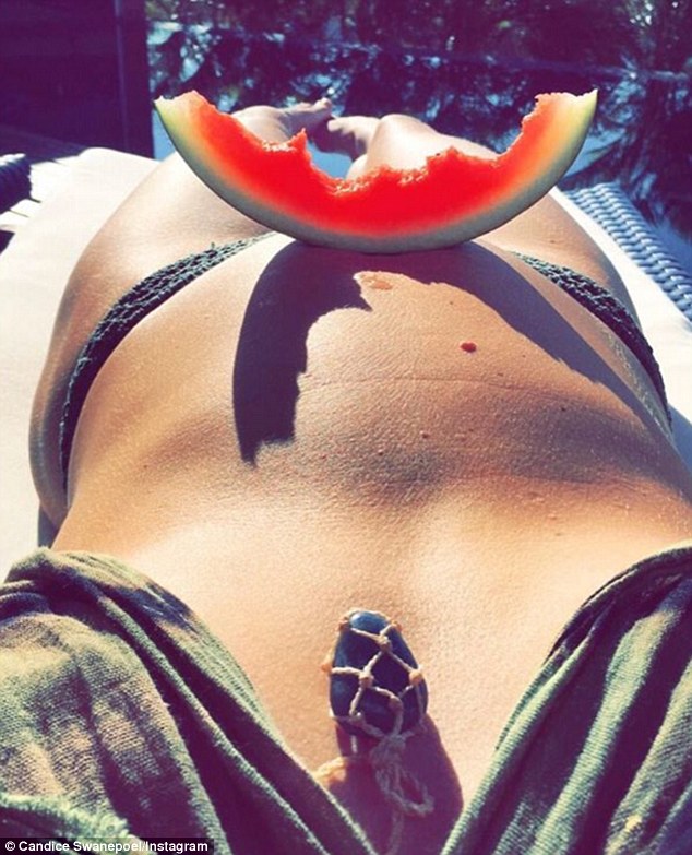 ROMA – Candice Swanepoel posta su Instagram una foto con un’anguria sulla pancia. L’angelo di Victoria’ Secret, si rilassa a bordo piscina in una foto scattata domenica e dimostra di essere un vero e proprio ritratto alla salute. La modella 27enne sudafricana è in attesa del suo primo bambino avuto dal collega modella Hermann Nicoli: a bordo piscina e poi in piedi, la modella indossa un costume verde ricamato all’uncinetto e mostra un accenno di pancetta. Candice e Hermann si frequentano da quando avevano 17 anni, e si sono fidanzati nel mese di agosto del 2015.