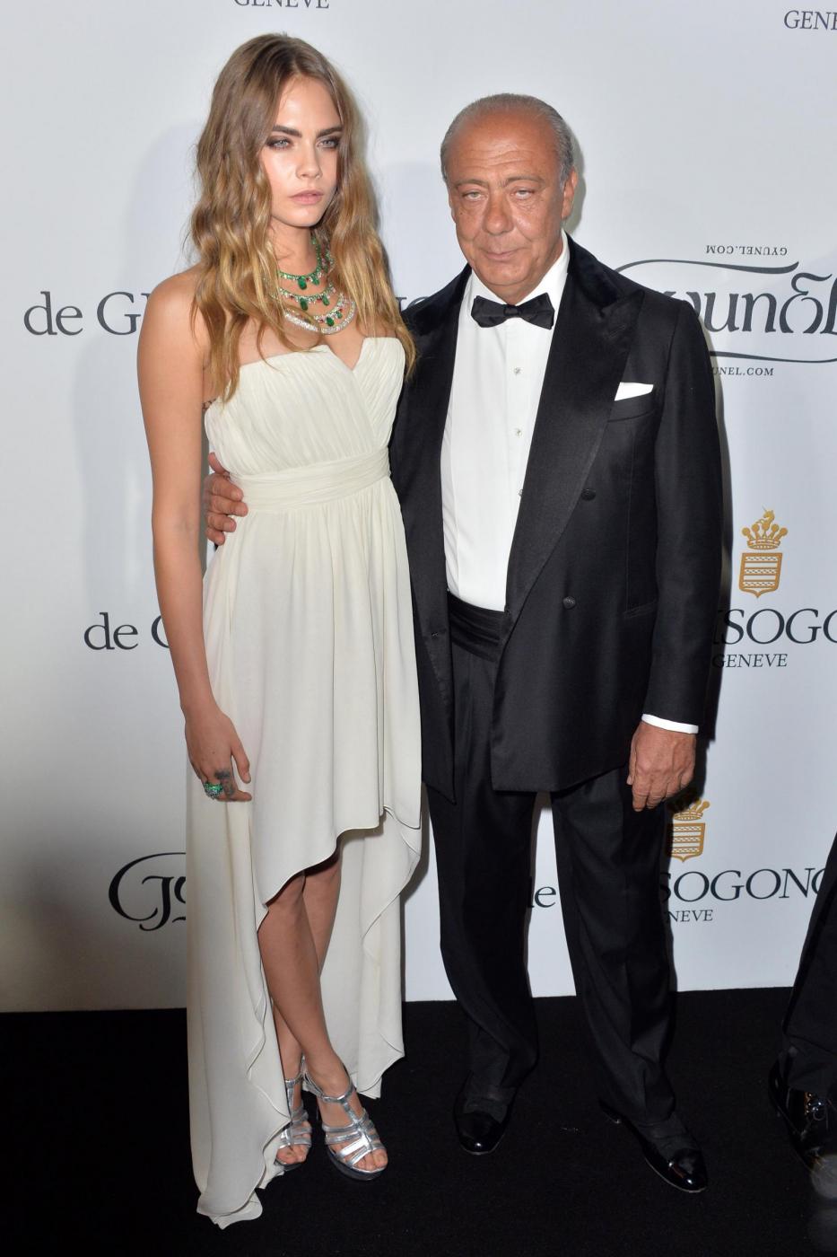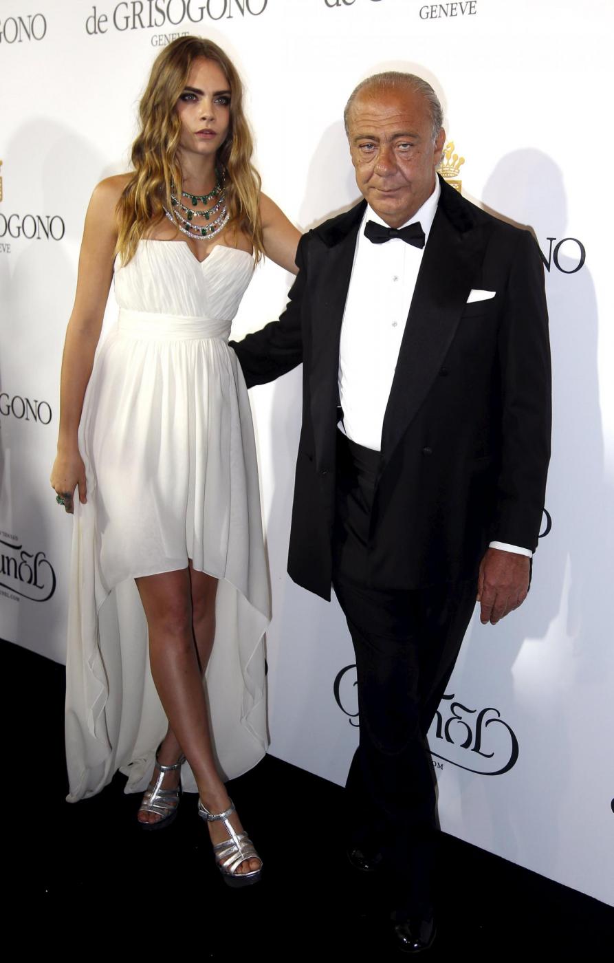 Fawaz Gruosi (R), founder of jewellery company de Grisogono, and British model Cara Delevingne pose during a photocall as they attend the de Grisogono party during the 68th Cannes Film Festival in Antibes, near Cannes, southern France, May 19, 2015. REUTERS/Eric Gaillard