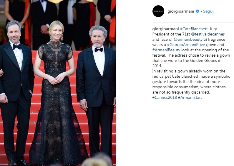 CANNES – Cate Blanchett incanta in Armani sul red carpet del Festival di Cannes 2018, edizione numero 71. L’attrice è presidente di giuria quest’anno e ha già dato prova del suo fascino magnetico. Per la prima serata ha indossato un abito nero, già sfoggiato nel 2014, ai Golden Globe.