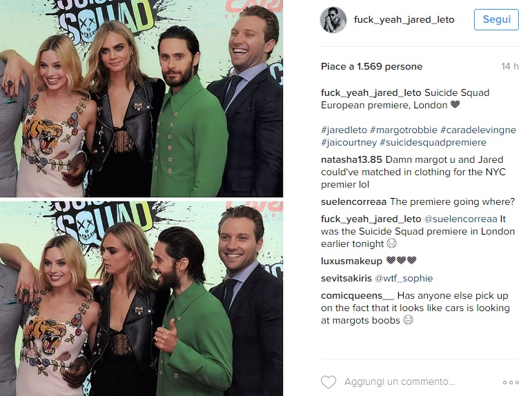 Intanto, in attesa di vedere il film, lei e l’altra attrice protagonista di Suicide Squad, Margot Robbie (che vedremo nei panni del personaggio Harley Queen) si sono lasciate andare con alcune dichiarazioni piccanti. Le due attrici si sono intervistate a vicenda per Love Magazine e nel corso della chiacchierata hanno avuto voglia di farsi una domanda… piuttosto intima. Le due, infatti, si sono chieste quali fossero stati i luoghi più strani in cui hanno fatto sesso. A rispondere per prima è stata Cara: