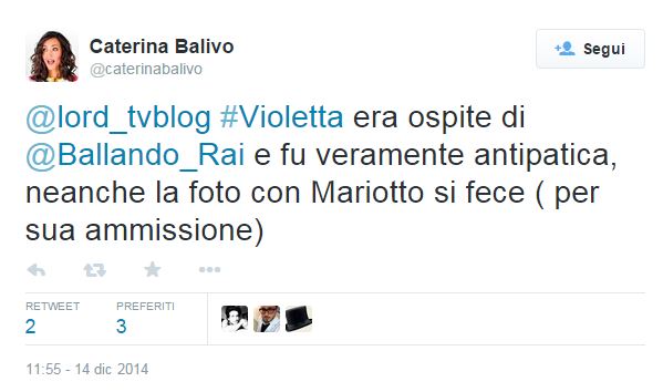 Caterina Balivo critica Violetta: “E’ antipatica”
