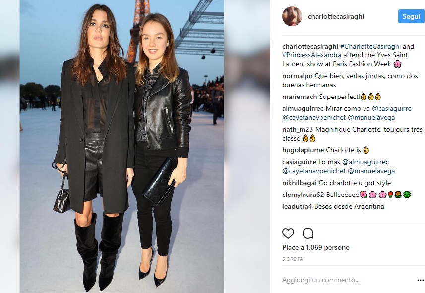 Charlotte Casiraghi ha assistito alla collezione Primavera/Estate 2018 Saint Lauren insieme alla sorella Alexandra di Hannover, 18 anni, quarta figlia della principessa Carolina di Monacoe la terza del principe Ernesto Augusto di Hannover.
