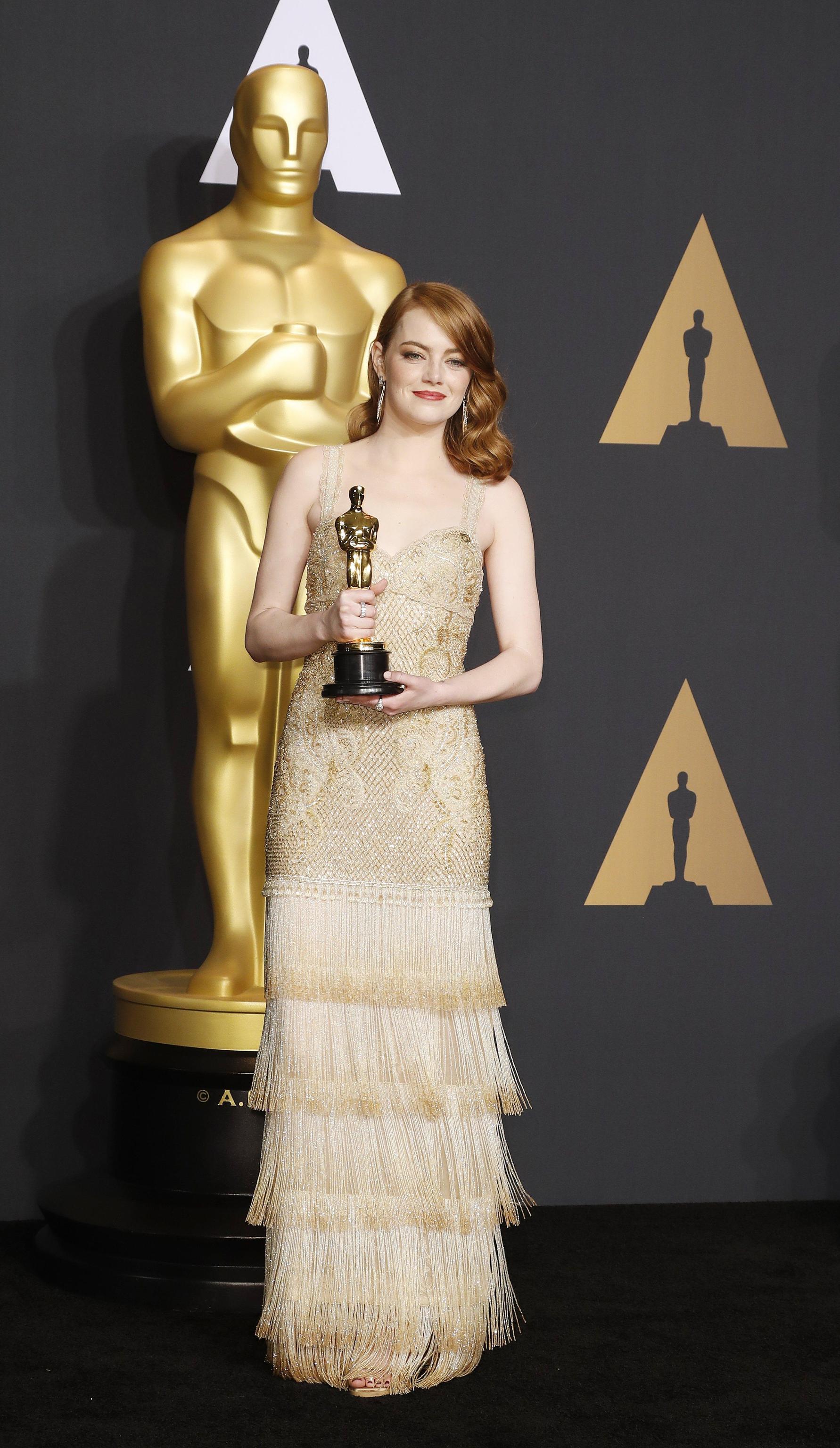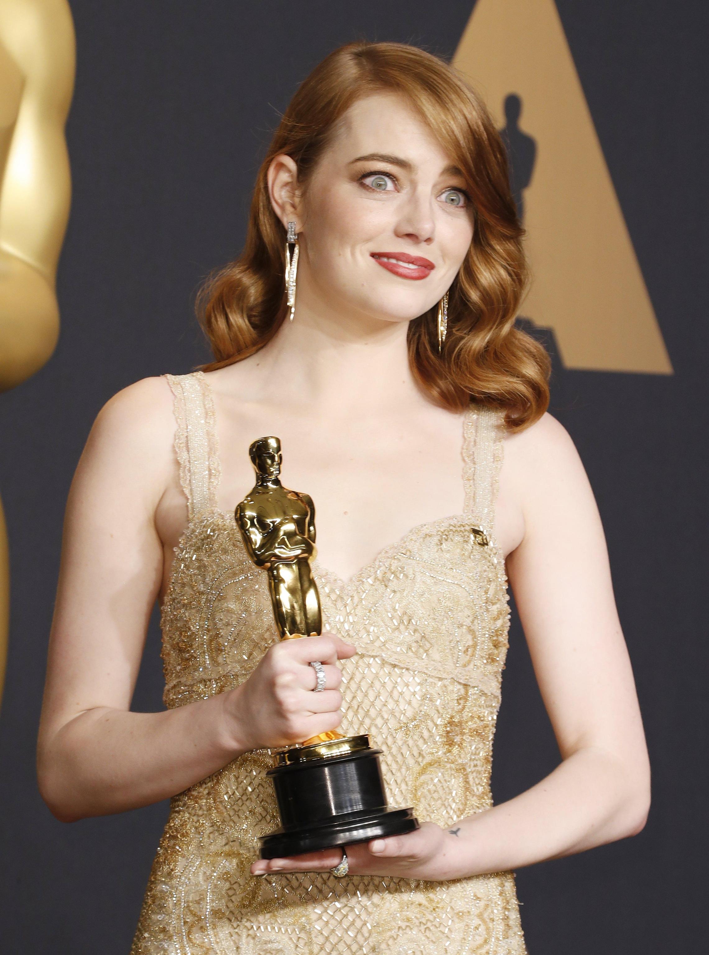 Emma Stone, 28 anni, è reduce dalla sua vincita agli ultimi Oscar, dove ha trionfato come miglior attrice protagonista per la pellicola La La Land. Alla cerimonia di premiazione ha indossato un elegante abito Givenchy di Riccardo Tisci, abbinato a un trucco glam anni ’30. La giovane attrice aveva già sfiorato la statuetta tanto ambita nel 2011, quando aveva ottenuto una candidatura per Birdman, diretta da Alexander Inarritu. Nata a Scottsdale in Arizona da Jeff e Krista Stone il 6 novembre 1988, del suo primo Oscar ha detto: