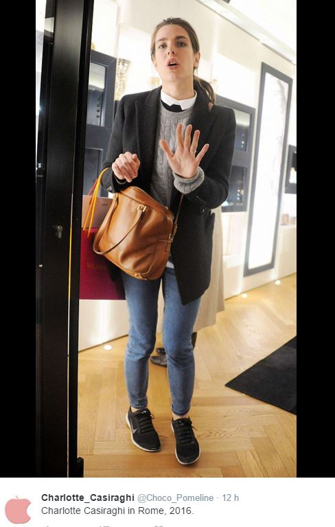 Charlotte Casiraghi fa shopping a Roma. La monegasca è stata paparazzata mentre faceva spese nella Capitale. Sull’account Twitter a lei dedicato sono comparse una serie di foto, che immortalano la figlia di Carolina di Monaco in tenuta casual mentre esce da un negozio. Bella come sempre, la nuova compagna del regista italiano Lamberto Sanfelice indossava un paio di jeans , scarpe da ginnastica, un maglione grigio di lana e una giacca nera. Un outfit primaverile adatto alle temperature che in questi giorni ci sono nella città eterna. D’latra parte ormai Charlotte è considerata un’icona di stile e bellezza. Un punto di riferimento fashion per migliaia di ragazze. Non a caso è stata testimonial del marchio Gucci e di Mont Blanc. Insieme a Kate Middelton, Letizia Ortiz e Charlène detta tendenze e appare sempre impeccabile sul red carpet e negli eventi pubblici.