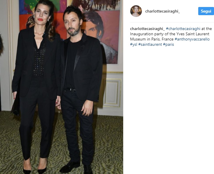 PARIGI – Charlotte Casiraghi total black all’inaugurazione dell’YSL Museum a Parigi. La figlia di Carolina di Monaco, 31 anni, ha scelto un outfit sobrio e allo stesso tempo elegante. D’altra parte la nipote di Grace Kelly è una delle donne più fashion del pianeta. Merito anche della sua bellezza, che ha poco da invidiare alle celebrities del mondo della moda e del cinema. Per l’inaugurazione Charlotte ha indossato un tailleur nero, sotto il quale si intravedeva una camicia trasparente dell stesso colore.
