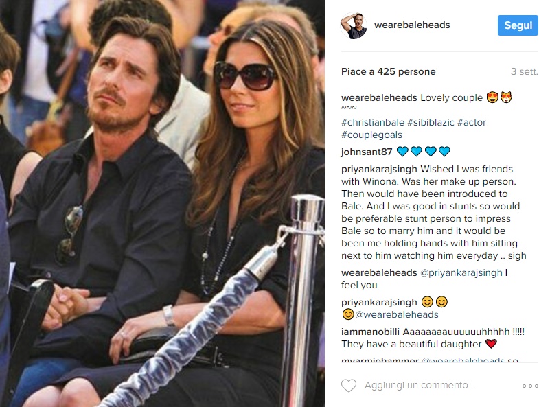 Per quanto riguarda la vita privata, nel 2000 Bale ha sposato Sandra “Sibi” Blazic, produttrice di film indipendenti che ha avuto anche un passato come modella, truccatrice ed assistente personale di Winona Ryder. I due hanno avuto due figli, Emmaline, nata il 27 marzo 2005 a Santa Monica in California, e Joseph, nato nell’agosto 2014. In una recente intervista, Chrstian Bale ha confessato: