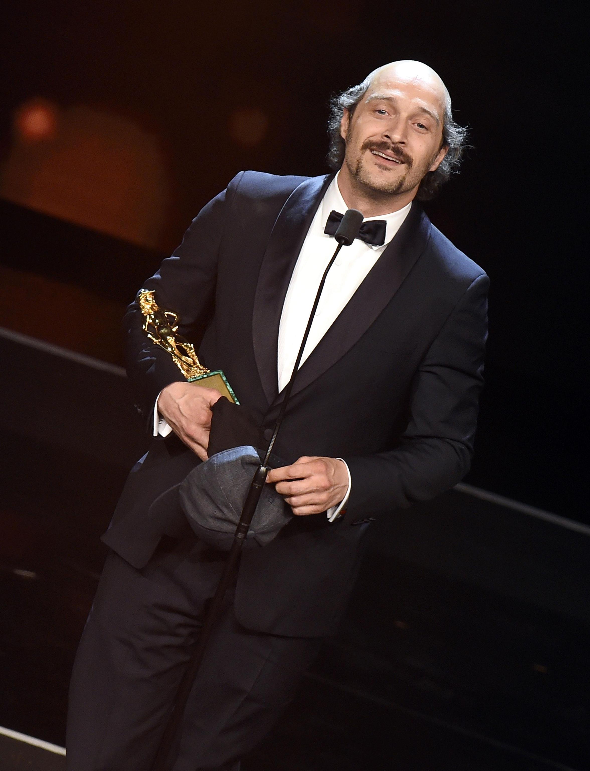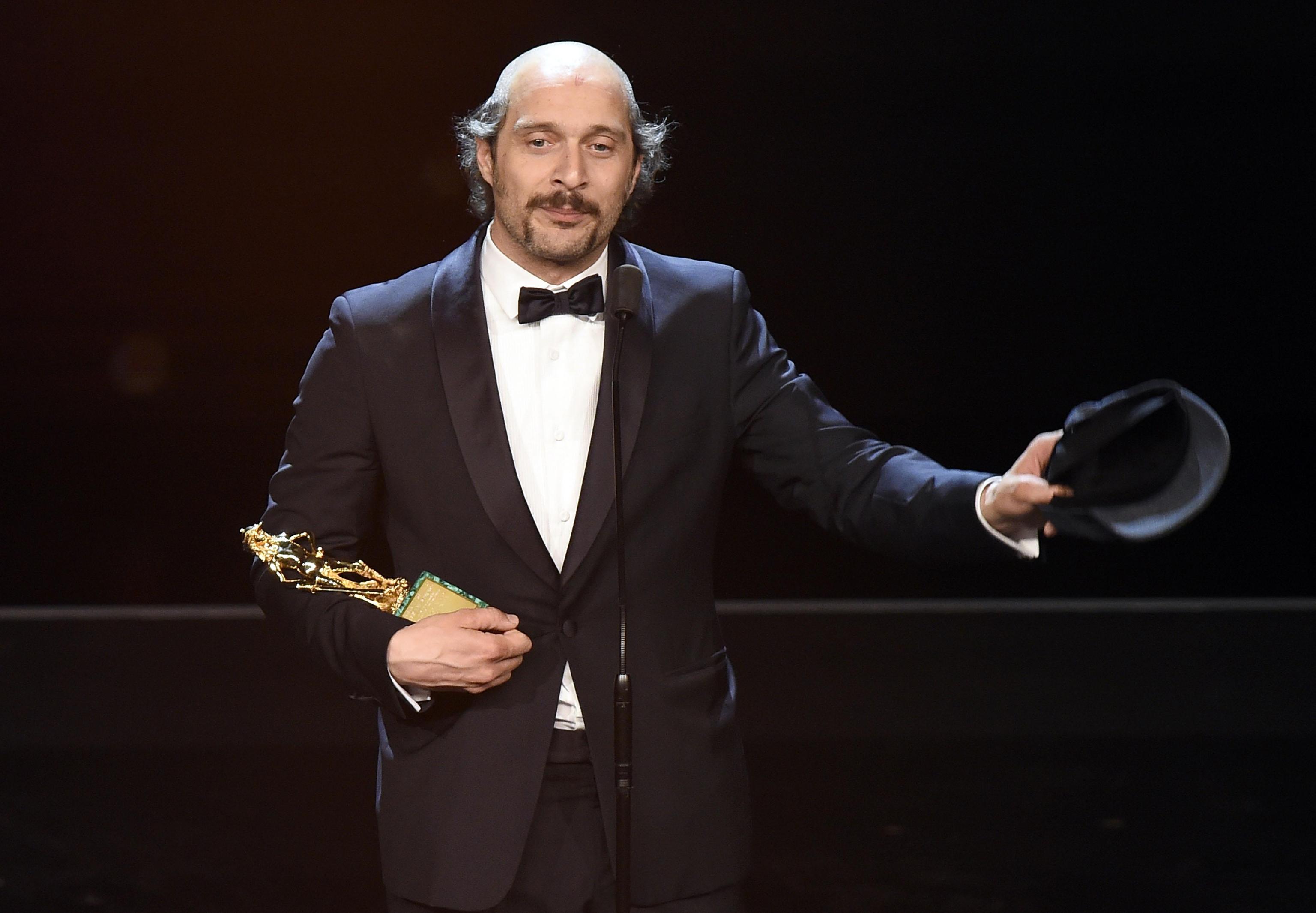 Claudio Santamaria calvo ai David: si toglie cappello e...FOTO
