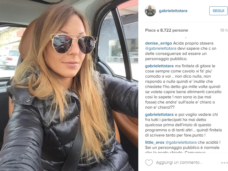 Naturalmente, i fan di Galella non ci hanno pensato un momento di chiedere notizie proprio a Tara, la quale è stata letteralmente sommersa di notizie sui profili Social, sia Instagram che Facebook. Nonostante le numerose ed incalzanti domande, però, Tara non ha aperto bocca se non per cercare di “scollarsi” di dosso le domande dei fan… in maniera non proprio diplomatica. Così, pur di non sbilanciarsi (probabilmente per accordi con la produzione) ha risposto forse troppo freddamente e i fan l’hanno ampiamente criticata per questo: