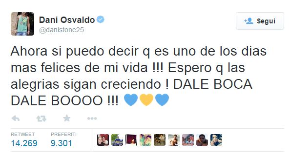 Daniel Osvaldo al Boca, fidanzata Jimena Barón gioisce