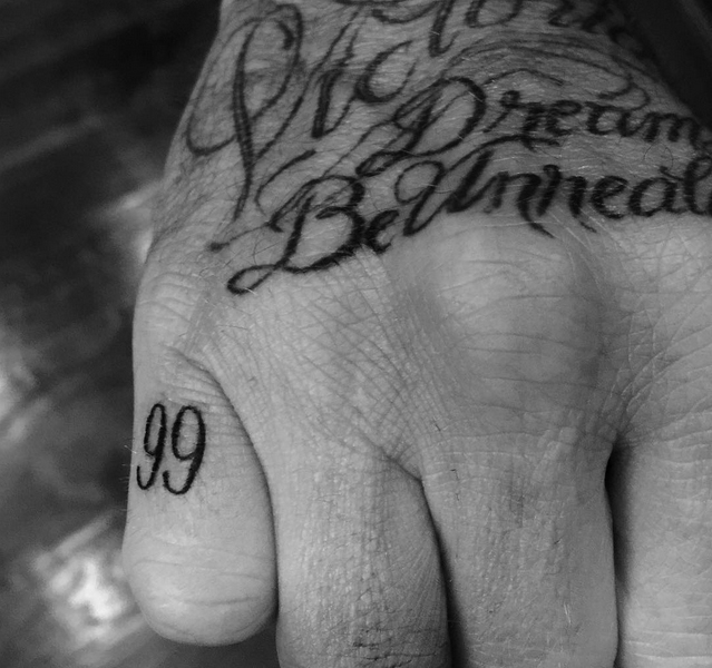 LONDRA – David Beckham si è fatto un nuovo tatuaggio sul mignolo della mano destra, e lo ha dedicato a sua moglie Victoria. Il tatoo raffigura il numero 99, l’anno in cui si è sposato con l’ex Spice Girls.