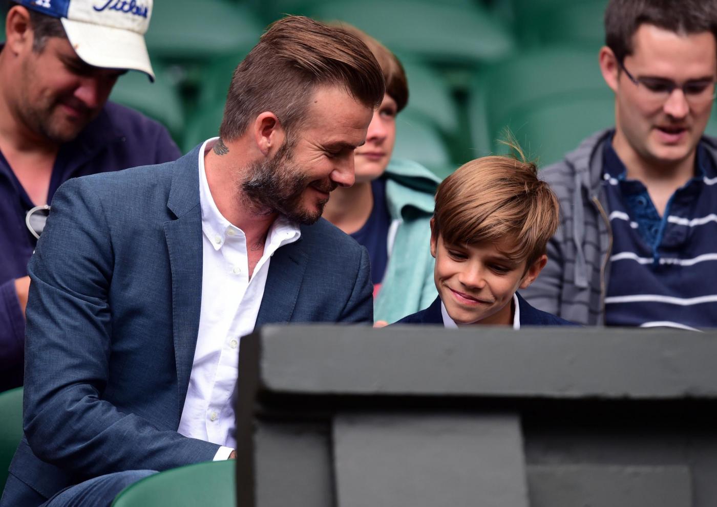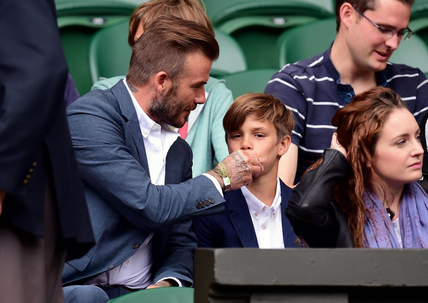 LONDRA – Dopo Pippa Middleton e Kate e William, sugli spalti di Wimbledon si vedono anche David Beckham con il figlio Romeo di 13 anni. Papà e figlio in questa gallery si assomigliano: stesso stile e stesso sguardo. Papà David è premuroso e affiatato con i suoi figli: ad un certo punto, mentre scherza sorride e mette la mano sulla bocca di Romeo come a farlo stare zitto.