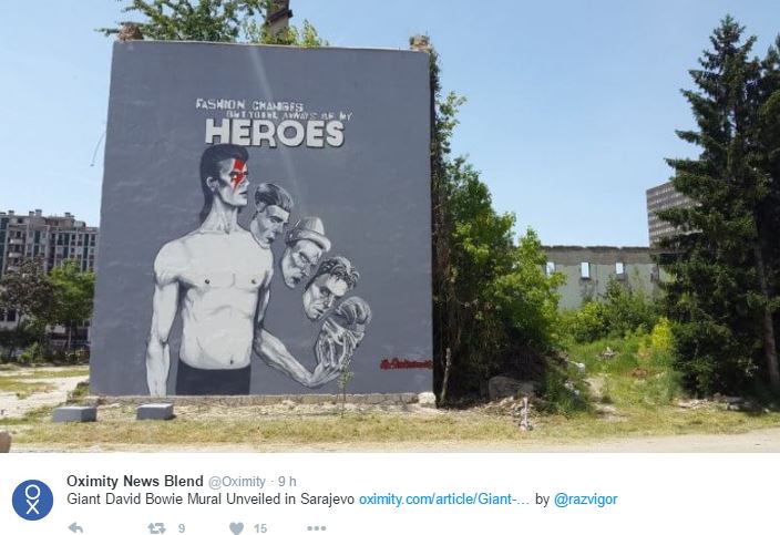 David Bowie, a Sarajevo enorme murales dedicato al cantante FOTO TWITTER