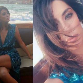 Venezia 75, Elisa Isoardi in blu: abito firmato Elisabetta Franchi