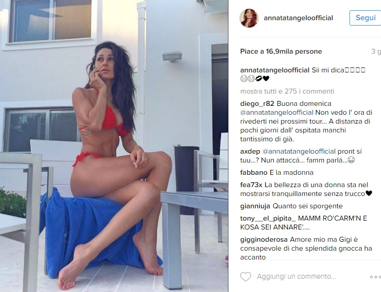Anna Tatangelo è da dieci anni legata a Gigi D’Alessio. I due hanno un figlio, Andrea, nato il 31 marzo 2010. La cantante tiene molto al suo fisico e infatti durante tutto l’inverno non ha rinunciato a sessioni in palestra e ad uno stile di vita alimentare sano. Nonostante ciò non nasconde di essersi rifatta il seno. Come lei stessa ha confessato in una intervista a Gente:
